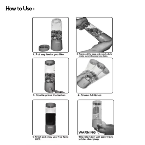 Can blend fruits 25 times after one-time fully charged. Its compatible with any power device with USB port such as plug into your car adaptor AC adaptor or power bank etc.