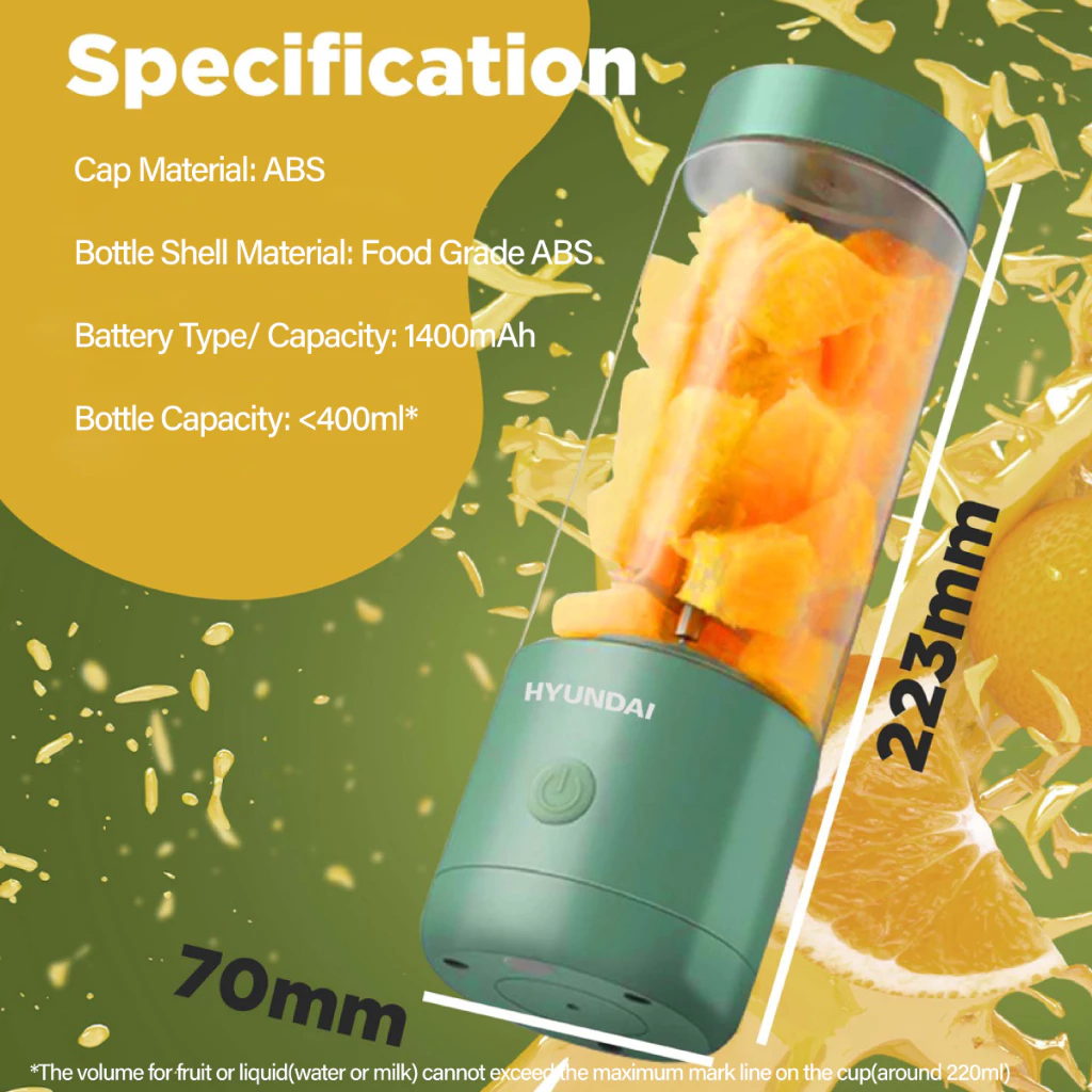 2 reviews for 🔥Today Only Sale🔥Hyundai Portable Fruit Blender Portable Usb Rechargeable 4 Blades 400ml