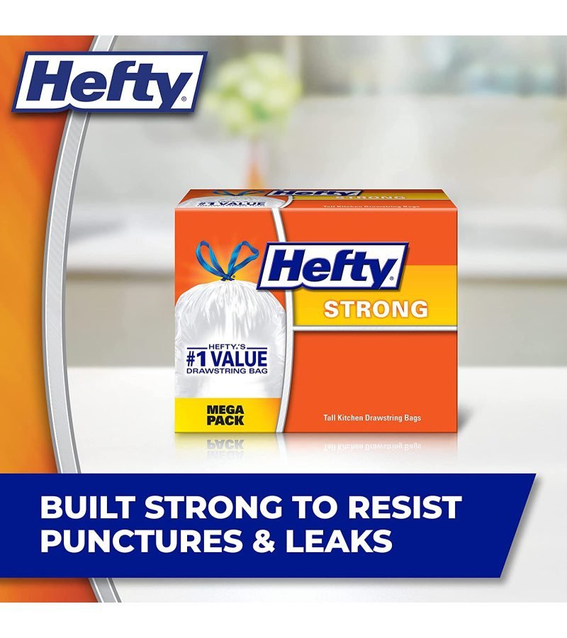 Hefty’s no.1 value tall kitchen trash bags feature reliable Hefty strength at a great price