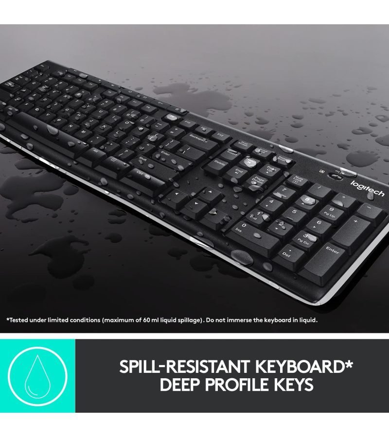 Durable and Resilient: This full-size wireless keyboard features a spill-resistant design (2), durable keys and sturdy tilt legs with adjustable height. Comfortable Mouse: This compact wireless mouse is designed to be equally comfortable for both left- and right-handed users, plus its smooth cursor control allows easy navigation on most surfaces