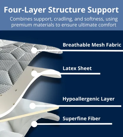 Our Four-Layer Structure Support pillow combines breathable mesh fabric, a latex sheet, a hypoallergenic layer, and superfine fiber to ensure ultimate comfort.