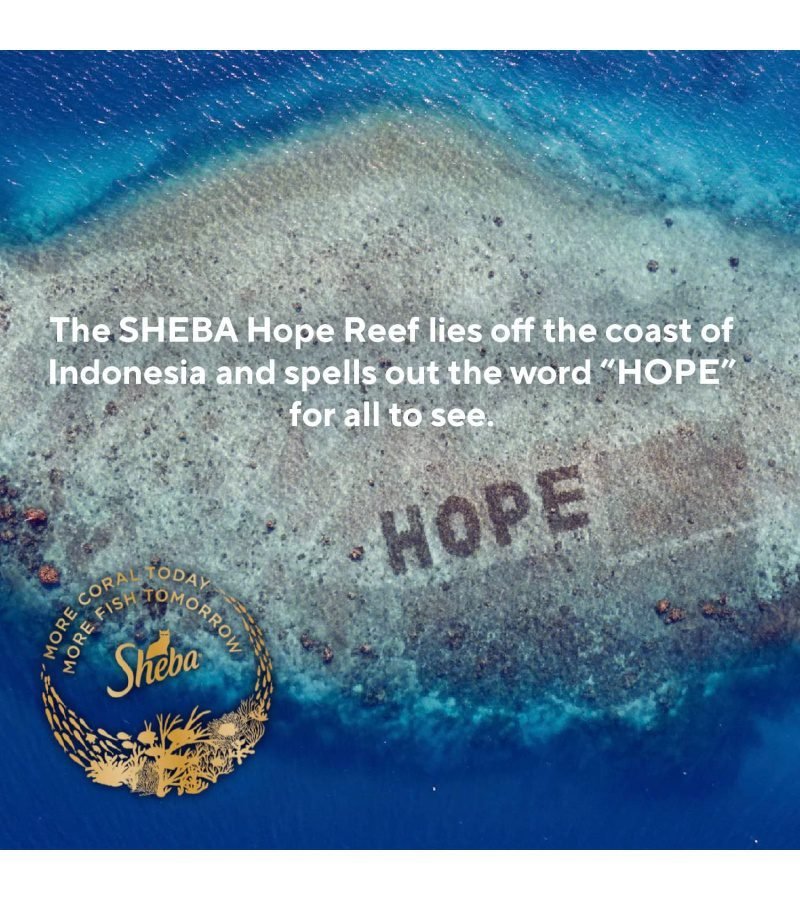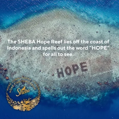 SHEBA has launchedone of the world’s largest coral reef restoration programs to preserve and restore the beauty in our oceans. Off the coast of Indonesia, this newly growing coral reef spells out ‘HOPE’ for the world to see. We’re choosing to act because the world’s coral reefs are at a breaking point, and we could lose this vital ecosystem forever. At SHEBA, we know that cats love fish and recognize that delicious food should not come at the expense of the planet. After all,more coral today means more fish tomorrow.