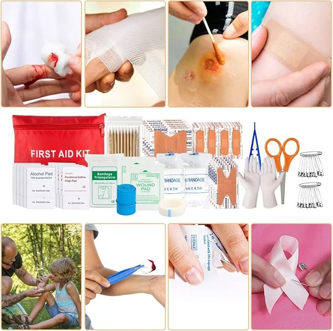 【Basic First Aid Kit】: For conspicuous storage, the included first aid supplies are packed in an extra bright red bag. It includes essential items such as tweezers, scissors and pins, will pads, bandage triangle bandages, stiches, cotton swabs, plenty of bandages, and more. Perfect for taking care of any medical or emergency needs during an outdoor wilderness adventure or disaster.