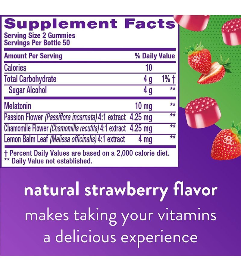 | Benefits | Provides 3 mg per serving of Melatonin to help support sleep and help with jet lag recovery* | Provides 5 mg per serving of Melatonin to help support sleep and help with jet lag recovery* | Provides 10 mg per serving of Melatonin to help regulate sleep cycle and help with jet lag* | Formulated to address the health needs of women | Works naturally with your child’s body to support sleep* |