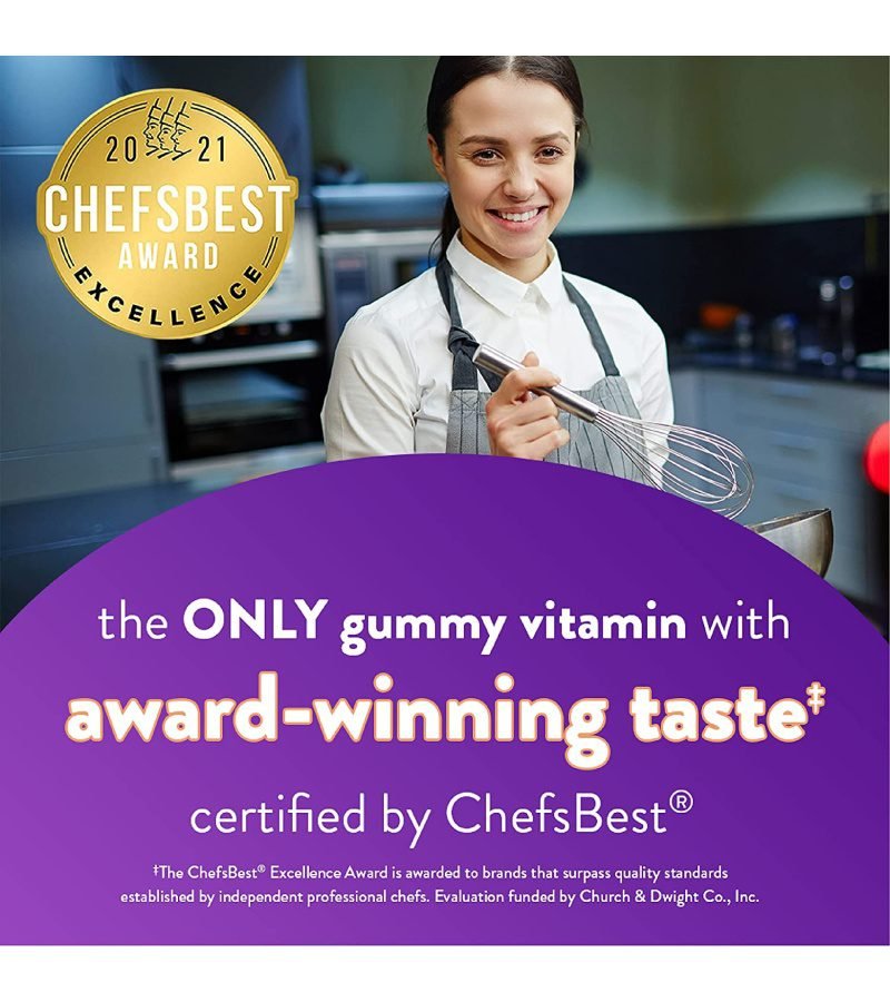 TASTY GUMMIES, TASTY VALUEWith award winning taste, our gummies are deliciously healthy without having to break the bank! The ChefsBest Excellence Award is awarded to brands that surpass quality standards established by independent professional chefs. Independently conducted, blind taste tests, funded by Church & Dwight Co., Inc. |