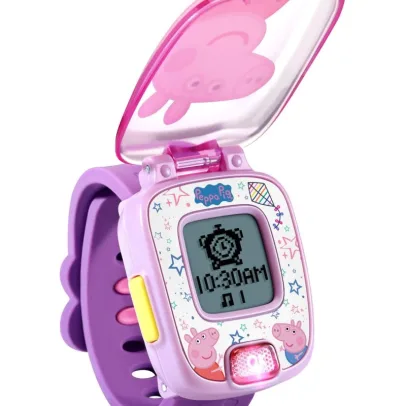 Peppa Pig makes number learning fun! Open the watch cover to hear Peppa Pig’s voice say her favorite phrases. Different clock faces, a timer, and cuckoo alarm clock allow children to build early habits and explore time concepts. Help Peppa Pig count fish, pick out fruits or vegetables and match shadows to practice counting, sorting and matching skills. Keep the learning right at hand!